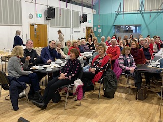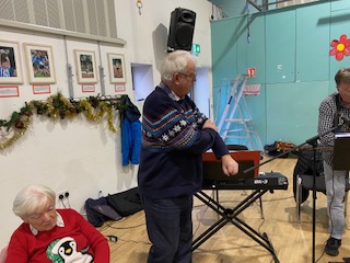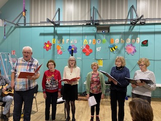 All the “old reliables” duly performed at the Drop In. Everyone joined in with gusto on all the carol singing. John did his thing with the Saw; Joe was an avuncular Master of Ceremonies, the Wexford Carol was sung sweetly and the session was rounded off with a resounding rendition of the Fairy Tale of New York by Eoin. Cór Cnoc Liamhna, the Irish choir sang a carol but unfortunately time did not allow for additional singing from the choir. The choir is in urgent need of male voices! If you are a baritone, a tenor or indeed can string a few vocal chords together, the choir wants to hear from you! Joe or Una Johnston are at the end of a phone to take your details!