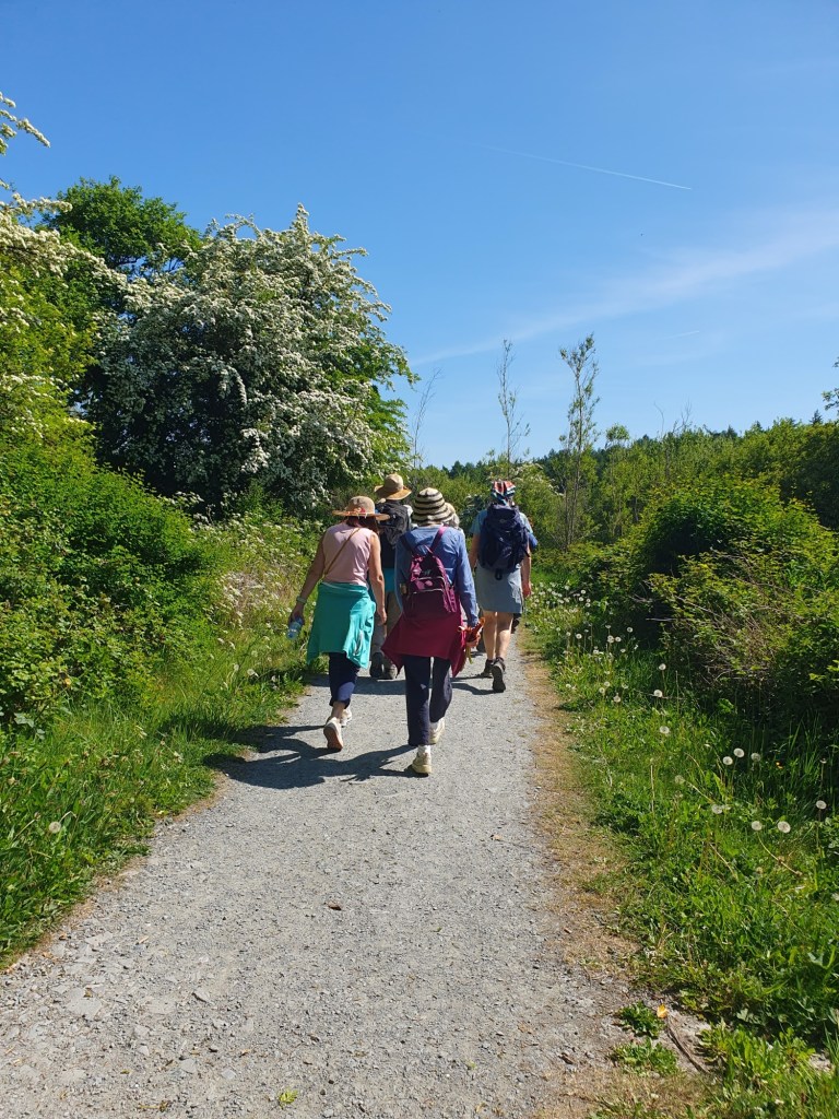 What a beautiful day we had for our walk today on the Blessington Greenway from AvonRí to Russborough and back . We included the Woodland walk, to see the rhododendrons as well as the walled garden, where some of us were encouraged to take bunches of the very plentiful rhubarb. Twenty three people did the walk.